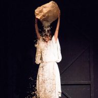 catwalk of life, performance installation by Lydia Klammer (performance) & Kęstutis Svirnelis (kinetic objects), Stuttgart, 2025