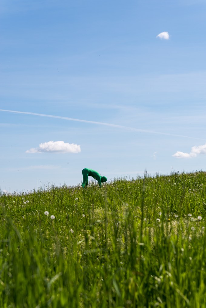 In „Aliennation“ wird die Entfremdung der Menschheit von der Natur auf groteske und humorvolle Weise erforscht. Eine einsame Performerin in einem grünen Ganzkörperanzug durchquert ohne Publikum im öffentlichen Raum eine Reihe von Spots und wird dabei fotodokumentarisch begleitet.
