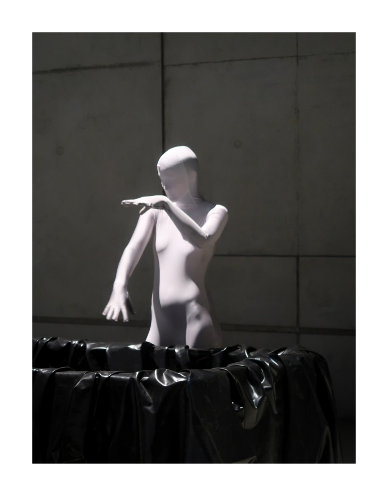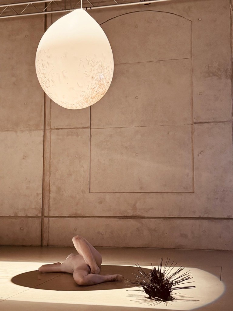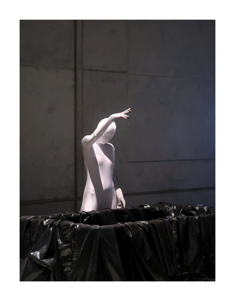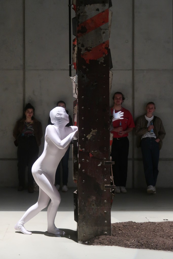 In der 15-minütigen Performance entfaltet sich eine eindrucksvolle Auseinandersetzung mit Körper, Materialität und historisch aufgeladener Architektur.